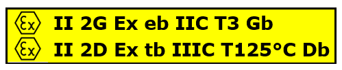 - dopuszczenie do grupy gazowej IIC (spełnia wymagania również dla grupy IIA i IIB) z klasą temperaturową T5 lub niższą;