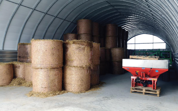 - hale tunelowe ARBENA® mogą być wykorzystywane do składowania płodów rolnych luzem (jako magazyn zbożowy), big-bagów z nawozami oraz jako hale na baloty i siano